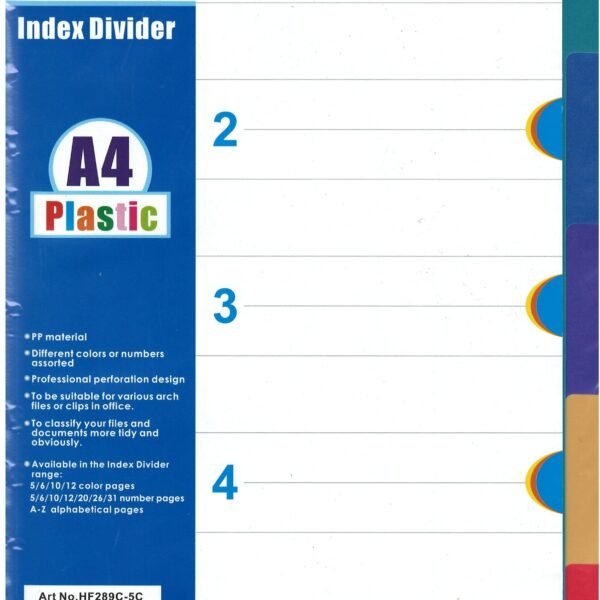 A4 PVC File Divider Index 1 – 31 Tab Colour