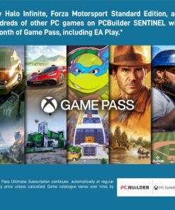 The PCBuilder SENTINEL Windows 11 Gaming PC also includes one month of PC Game Pass including EA Play. Play over 100 high-quality PC games, in various genres such as Halo Infinite, Forza Horizon 5, and Minecraft on your new gaming rig. With new games added all the time, there’s always something new to play from day one.