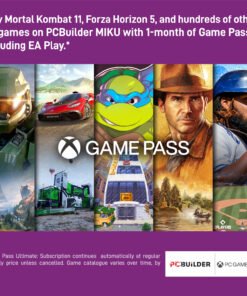 The PCBuilder ASUS X MIKU Windows 11 Gaming PC also includes one month of PC Game Pass including EA Play. Play over 100 high-quality PC games, in various genres such as Halo Infinite, Forza Horizon 5, and Minecraft on your new gaming rig. With new games added all the time, there’s always something new to play from day one.