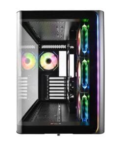 The FSP M580 ARGB ATX Gaming Chassis is a masterclass in modern case design, featuring a striking 270° panoramic curved glass exterior that offers an unobstructed view of your build. The seamless integration of tempered glass and a rounded chamfer design gives this case a futuristic and elegant aesthetic, making it a true centerpiece for any gaming setup. Built with both style and performance in mind, the M580 enhances the gaming atmosphere by blending high-end visuals with functional engineering.