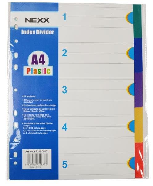 A4 PVC Divider Index 5 Tab Colour