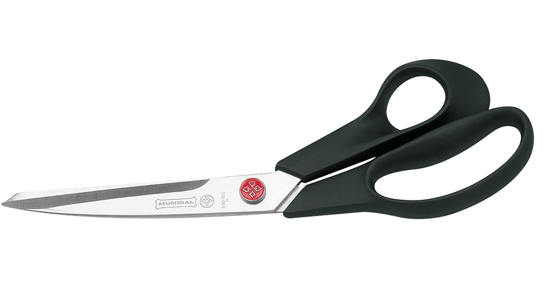 Red dot, bent trimmers / dressmaker shears, 9 1/2″, black, knife edge, single blister