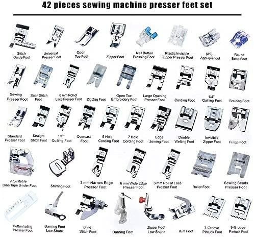 - Package Included:The first line:1.Stitch Guide Foot2. Universal Presser Foot3. Open Toe Foot