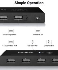 - UGREEN USB 2.0 4-Port Switch Box, with 1.5m USB Cables x1