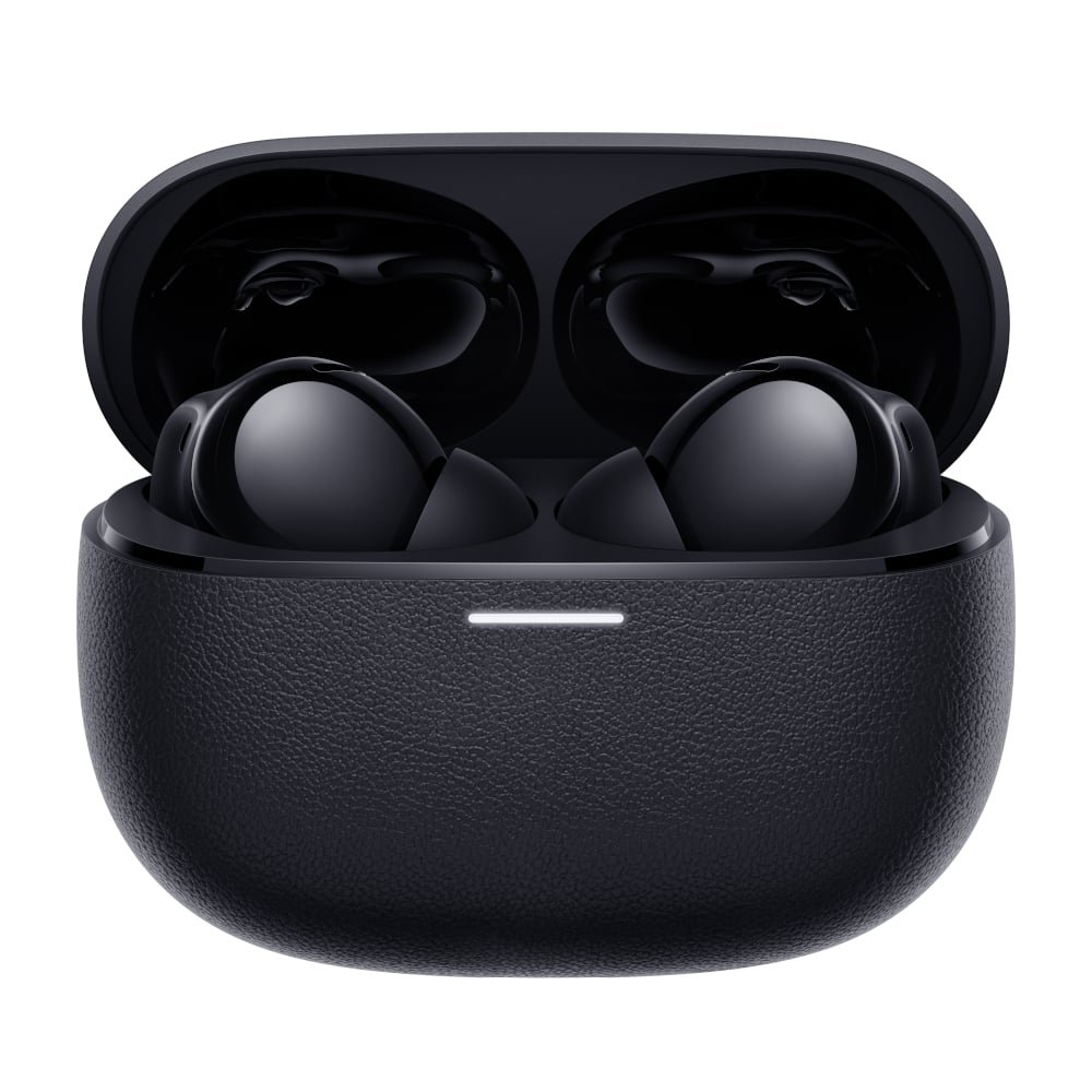 The black version features vegan leather accents on its case’s lower part for added texture and sophistication. The ear stems boast a multi-layer coating process that creates a unique marble texture effect that is subtle yet charming.