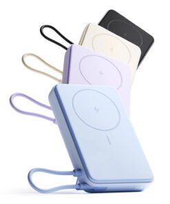 Designed for the connected era, this power bank handles multiple charging demands with ease. It offers the flexibility to charge devices both wired and wirelessly, simultaneously. Whether you need to power up your phone via the magnetic wireless charger while also charging your earbuds through the USB-C port, this power bank ensures all your essential gadgets receive power without interruption. The 10000mAh cell capacity provides substantial backup, capable of multiple recharges for most smartphones, ensuring you remain powered throughout your busiest days with this reliable power bank.